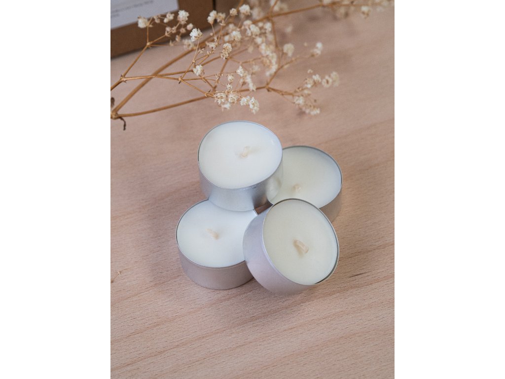 Set 10 čajových svíček z včelího a kokosového vosku s vůní Ylang Ylang. Ručně odlévané, čisté hoření bez škodlivin, ideální i jako dárek.“