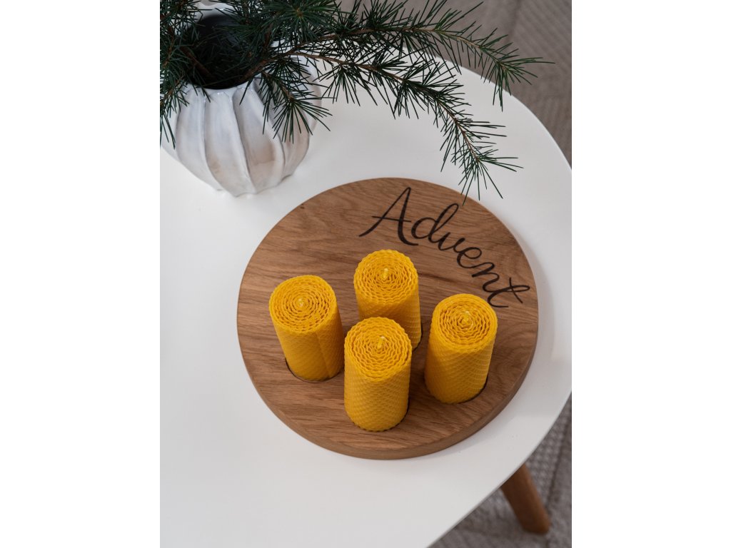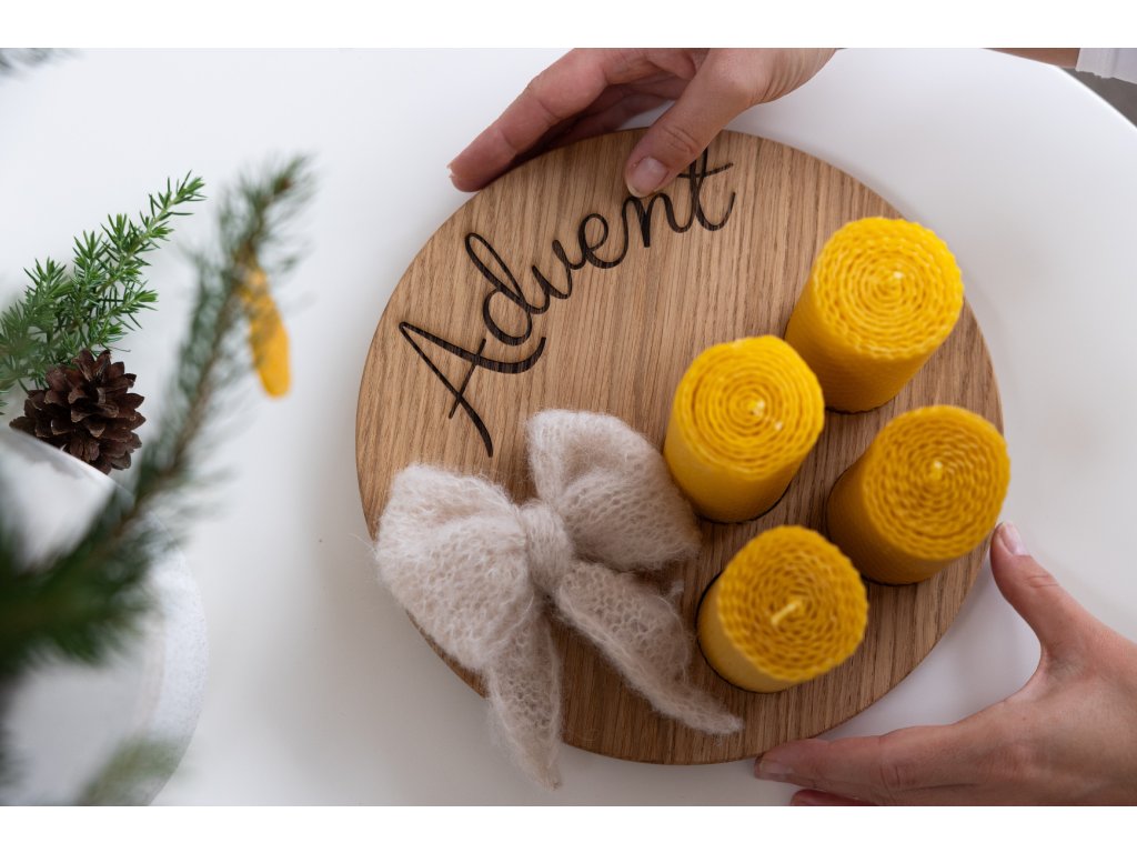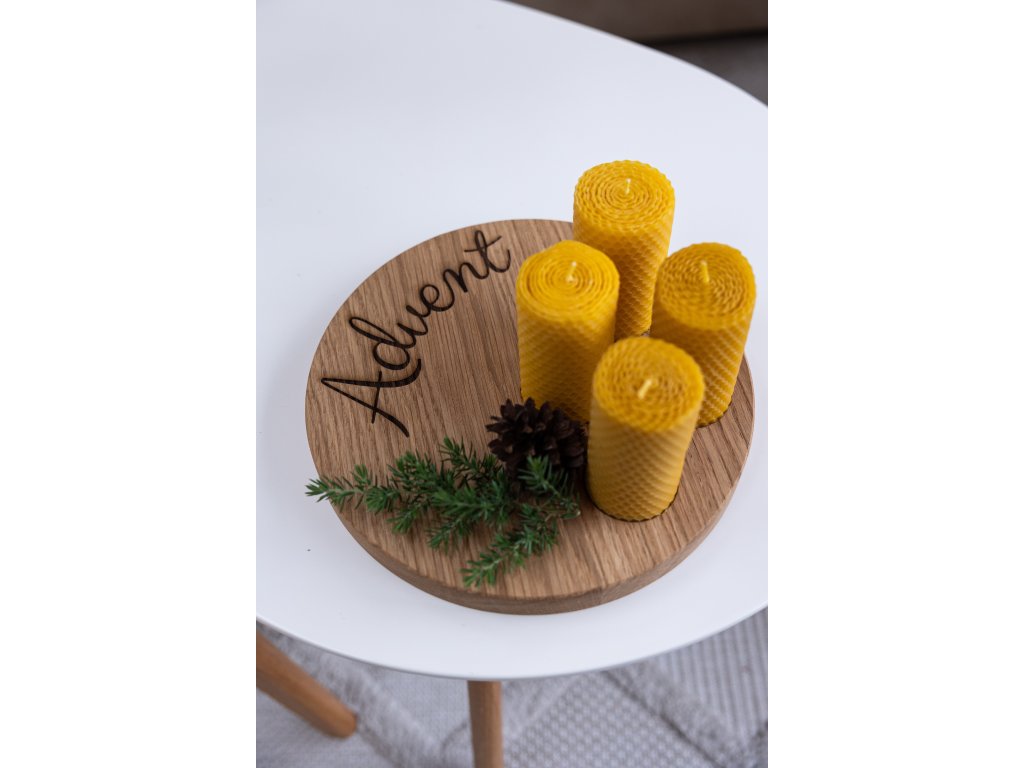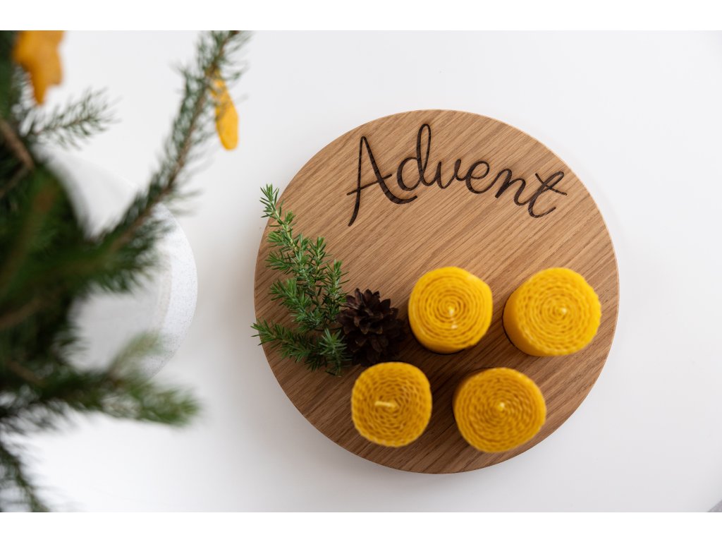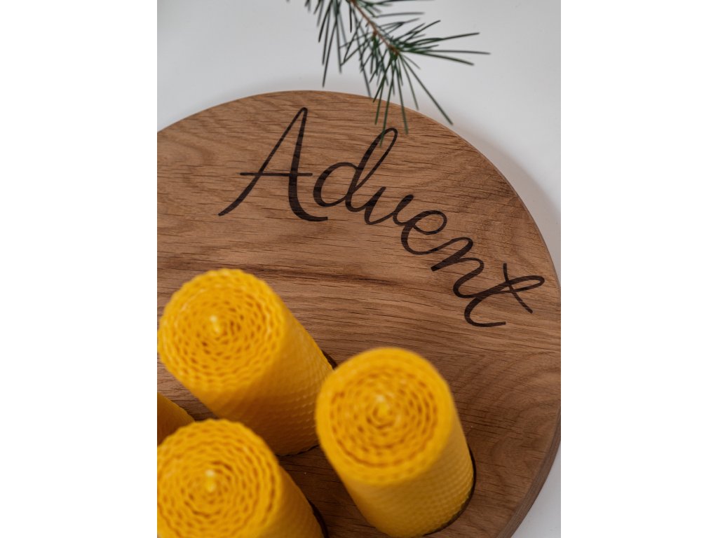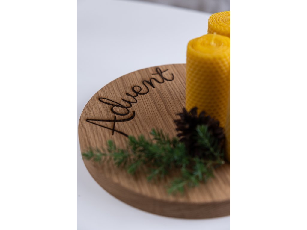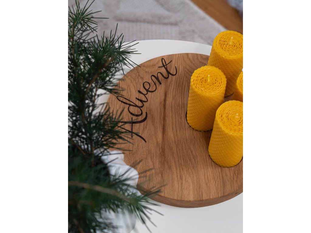 Originální adventní svícen z dubového dřeva v autorském designu, který jinde nenajdete. Minimalistický kruh o průměru 25 cm a výšce 2,5 cm je vyrobený z kvalitního dubového dřeva a doplněný nápisem Advent, který mu dodává jedinečný charakter.