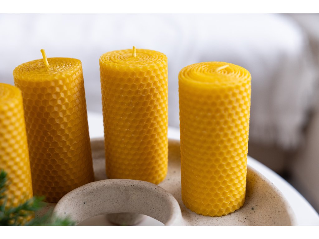 Do svícnu se krásně hodí svíčky z včelího vosku z naší nabídky, které dodají dekorace dokonale přírodní design a provoní celý byt.