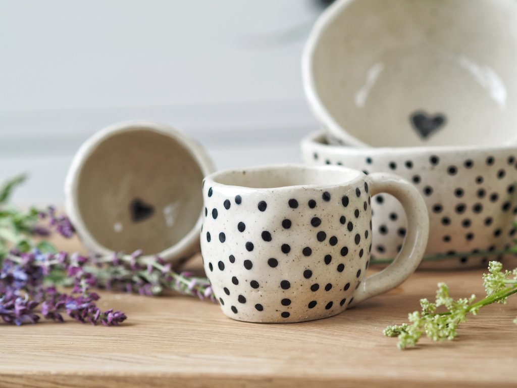 Každý kus je originál – může se lehce lišit tvarem, kresbou puntíků i odstínem glazury. Právě v tom je jeho kouzlo. Držíš v ruce jediný exemplář, který nikdo jiný nemá.