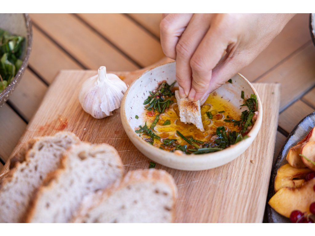 🌿 Díky drážkám v keramické misce se česnek snadno rozmělní a dip je hotový během chvilky – a rovnou připravený k servírování.