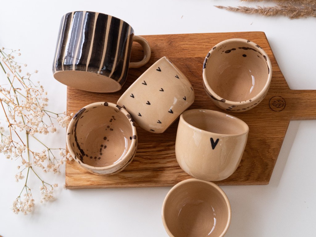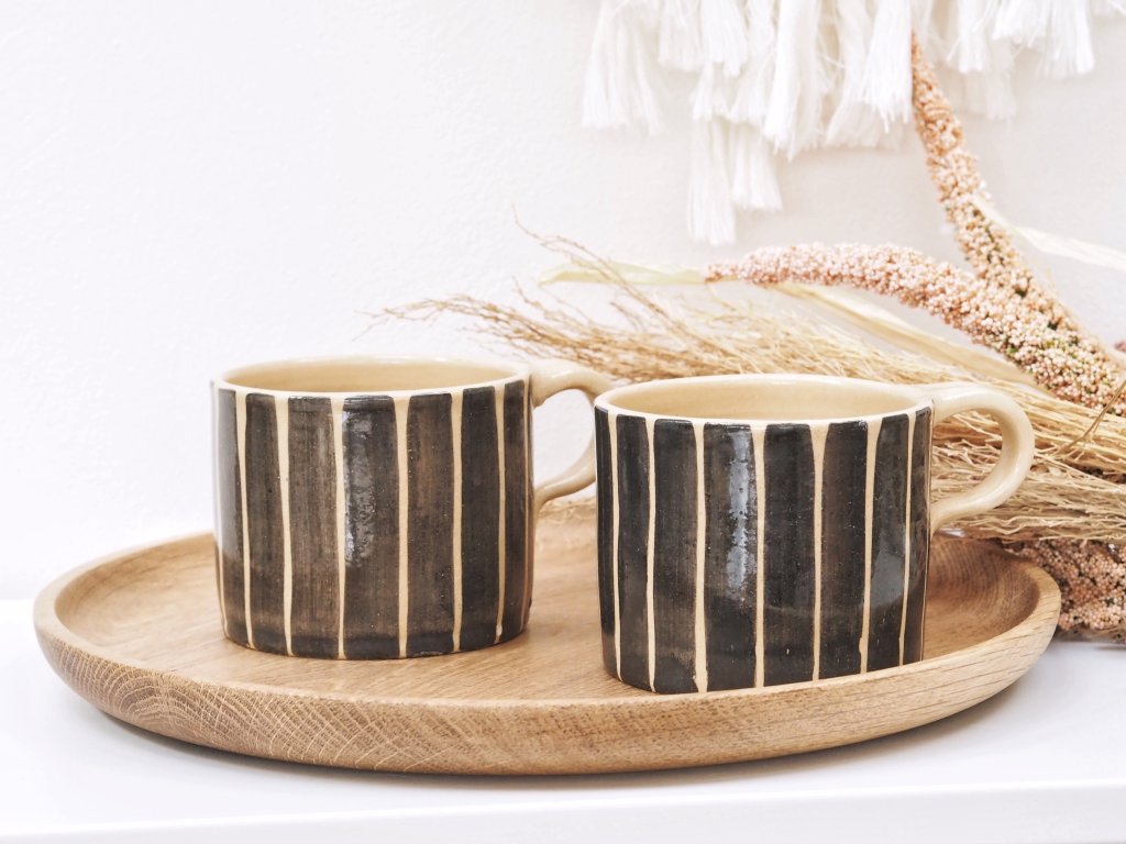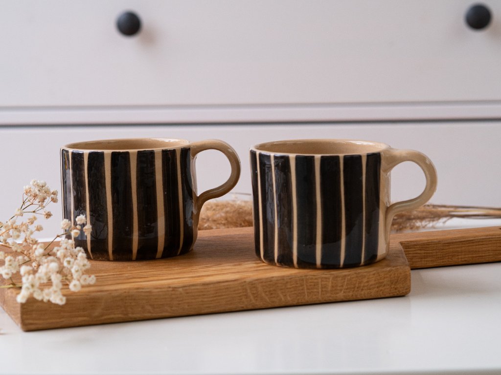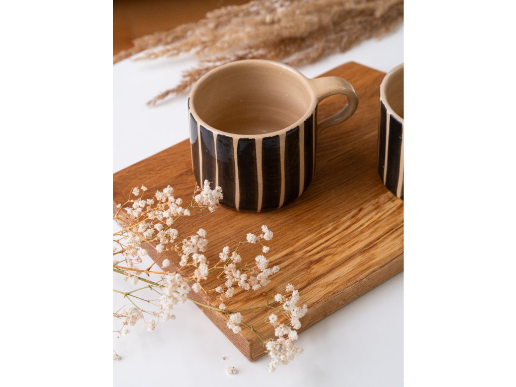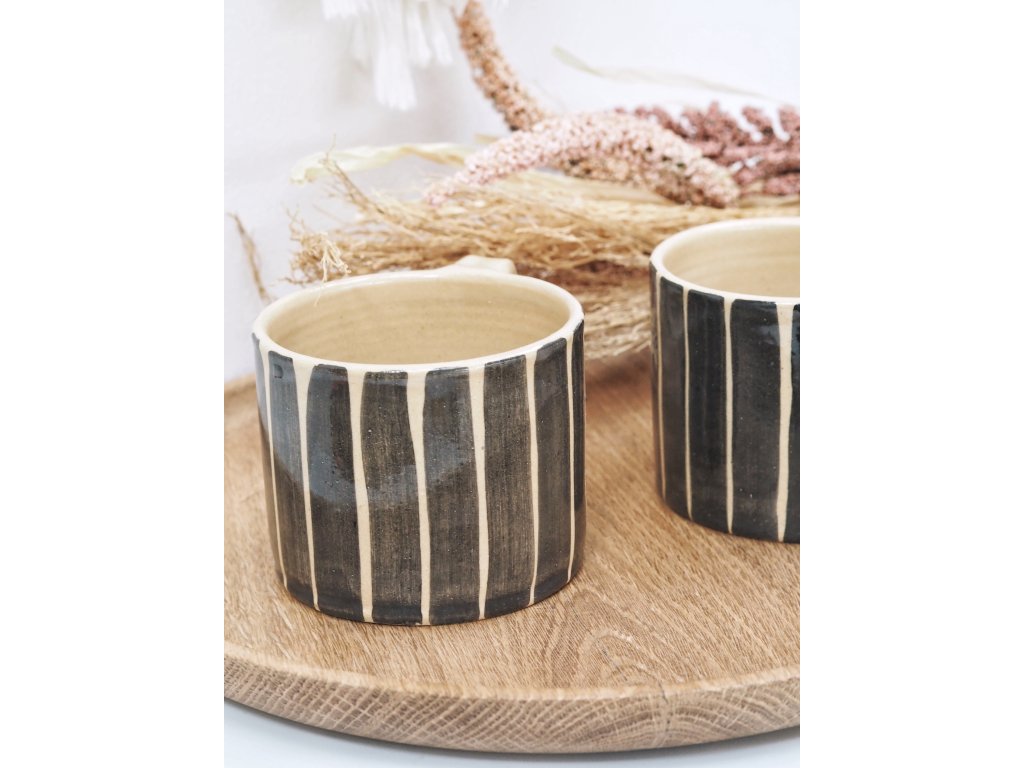 Ručně vyrobený keramický hrníček s černými proužky