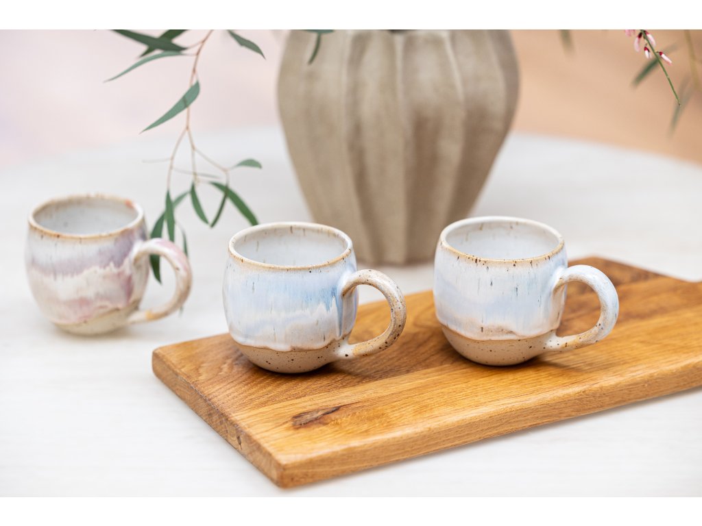 Hrníček je vyroben ze zdravotně nezávadné kameniny a glazury a vypalován při vysokých teplotách, takže je pevný a vhodný pro každodenní používání. Každý kus vzniká ručně, a proto se může mírně lišit v odstínu i kresbě glazury – co kus, to originál.