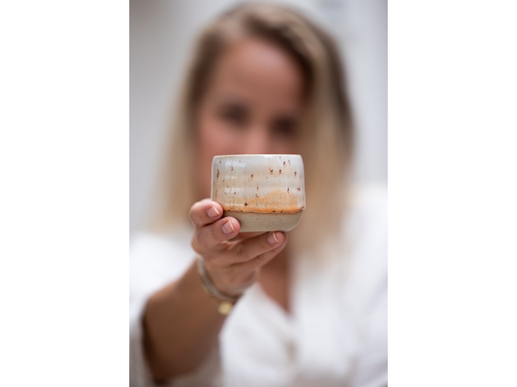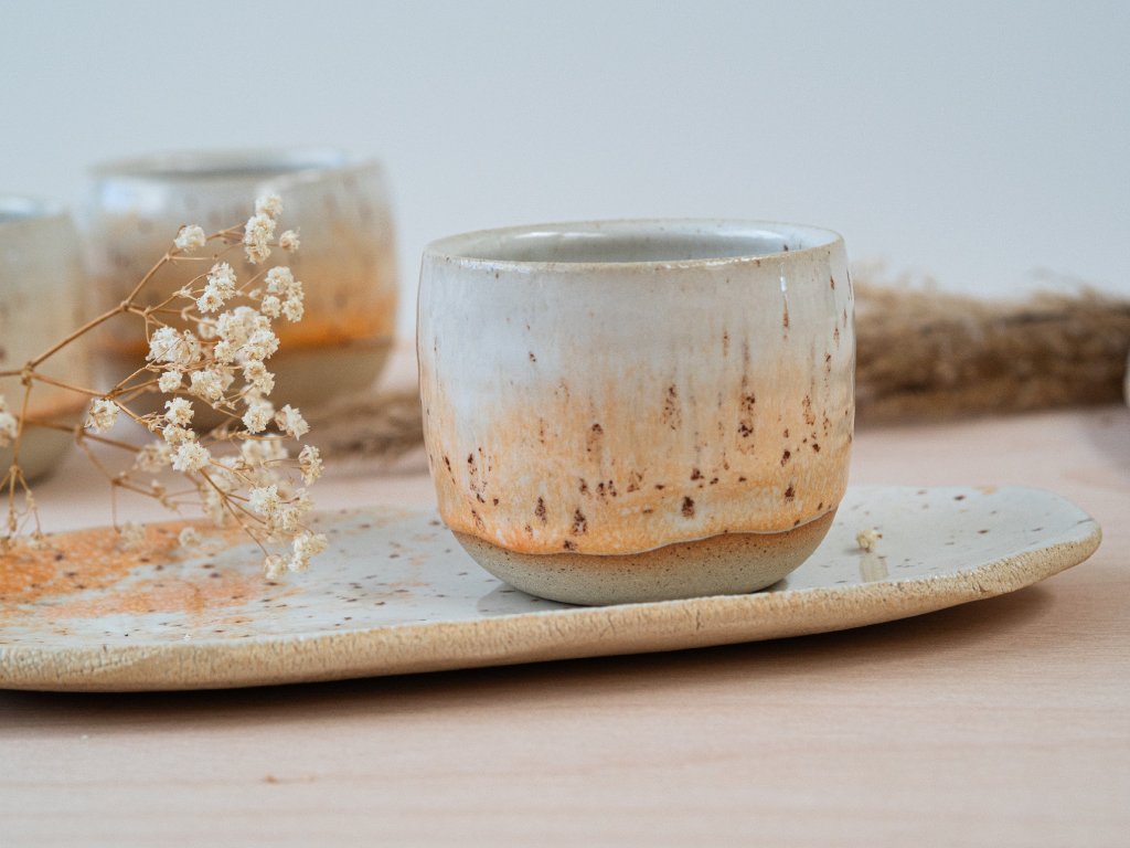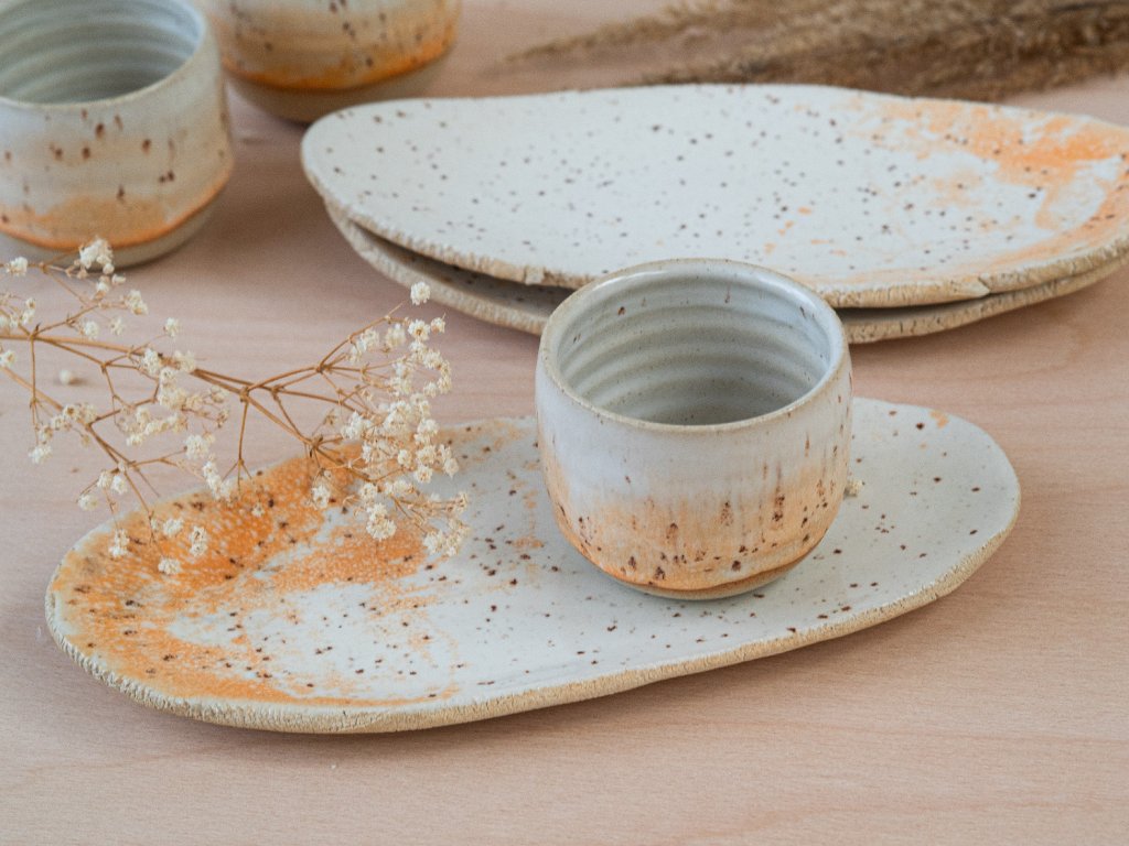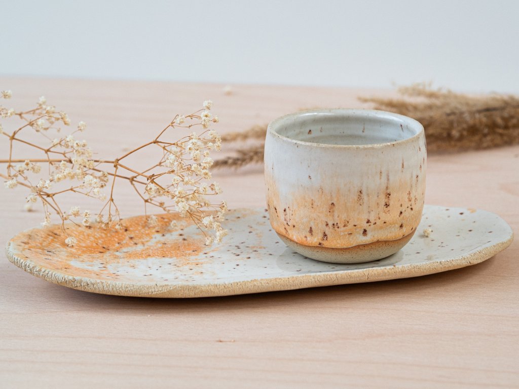 Set keramického kalíšku a oválného talířku – hřejivá podzimní kombinace
