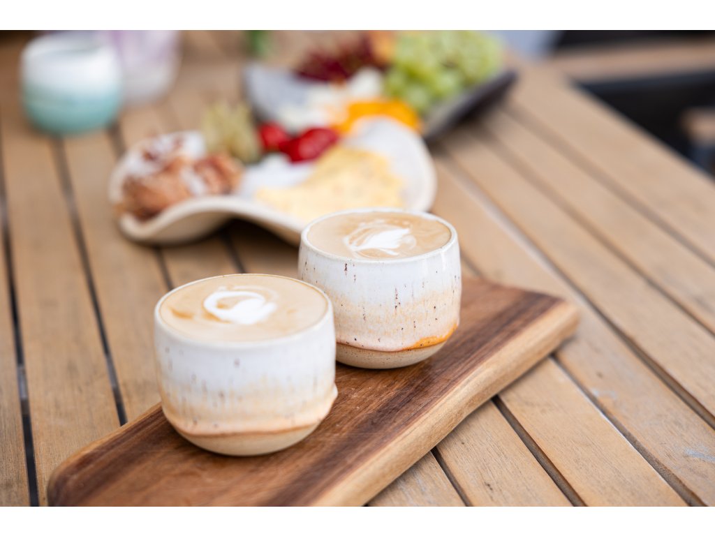 Dopřejte si chvíle pohody s keramickým setem, který vnese do vašeho stolování jemnost i rustikální kouzlo ruční práce. Set obsahuje oválný talířek (25 × 11 cm) a kalíšek o objemu 175 ml – ideální na cappuccino, lungo s mlékem nebo na vaše oblíbené dobrotky.