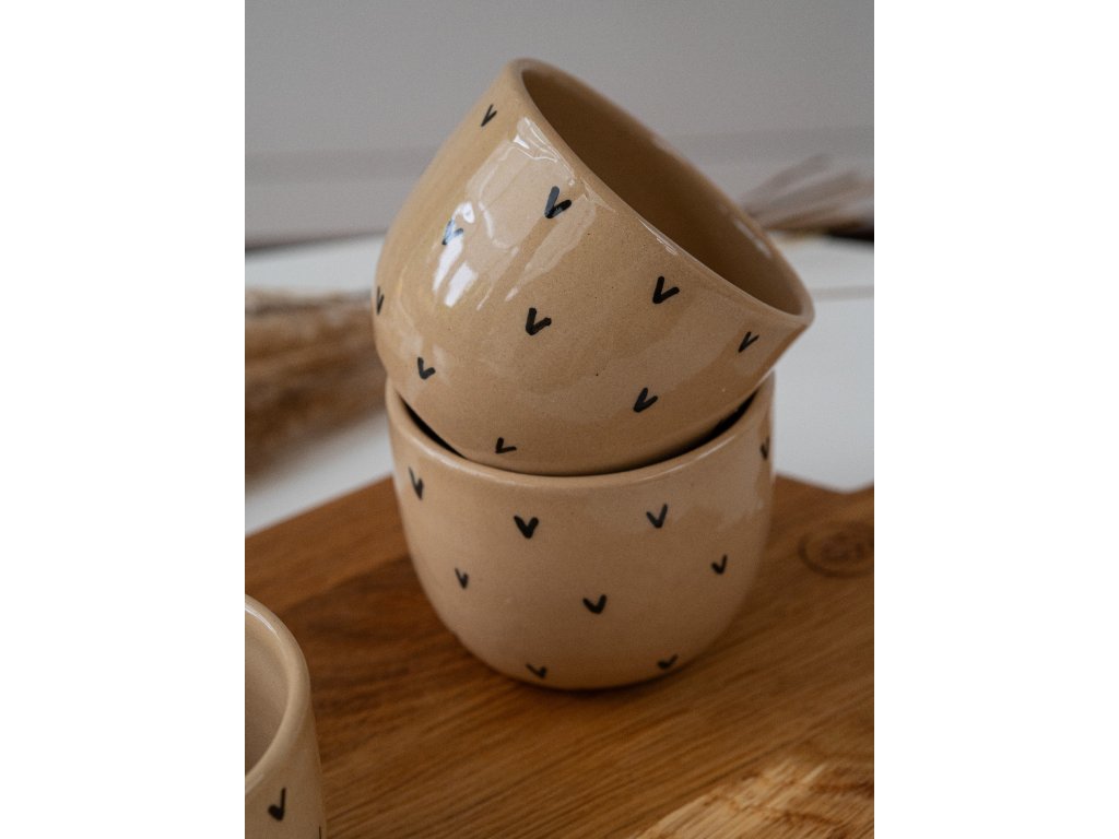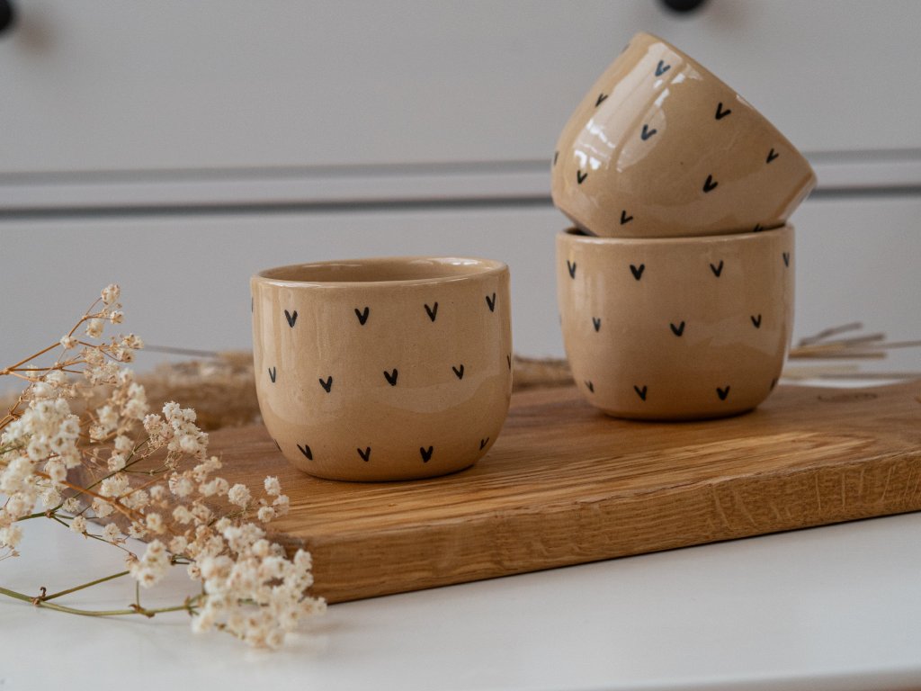 Keramický kalíšek s rozesetými srdíčky
