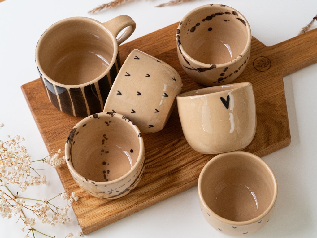 Kalíšek z béžové kameniny a glazury o objemu 150ml poslouží na espresso s mlékem nebo lungo.
