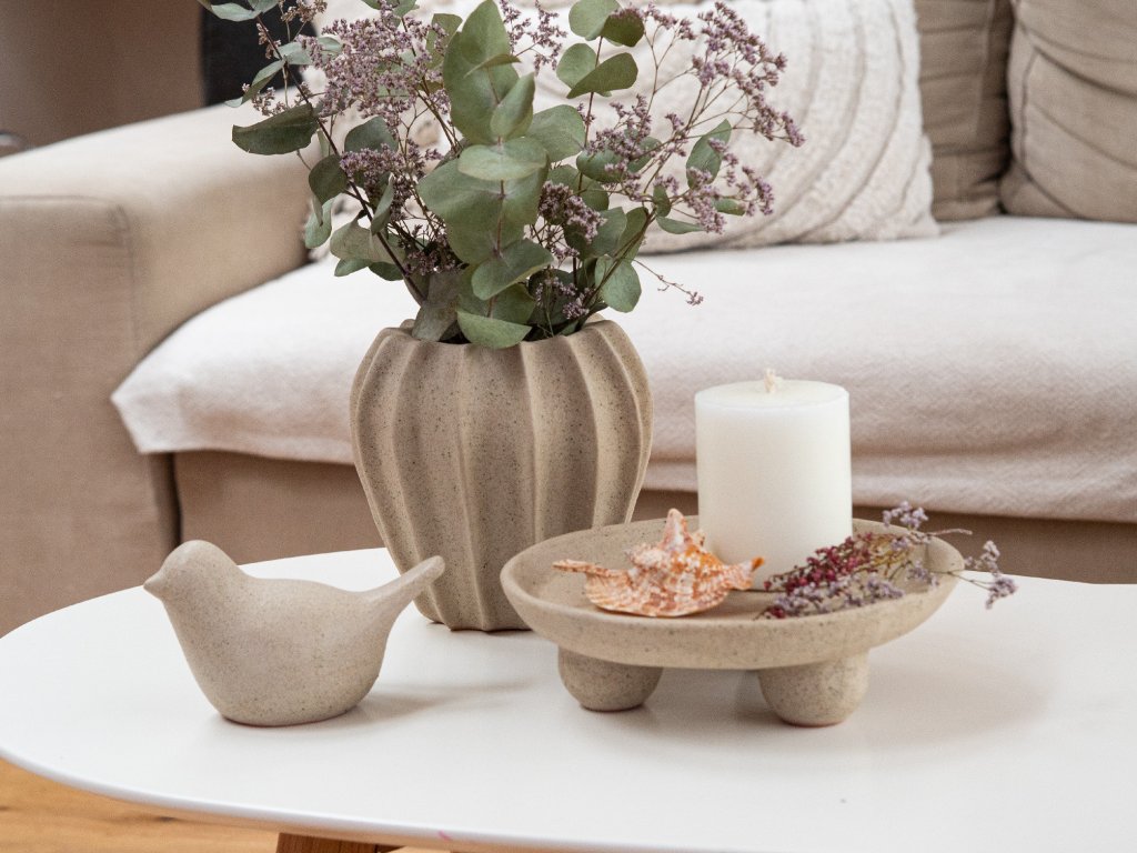 Kombinovat lze také s vázou nebo ptáčkem. Celá keramická kolekce na sebe navazuje a vy si tak můžete vytvořit kombinovatelnou sérii, kterou využijete v průběhu celého roku na nejrůznější způsoby.