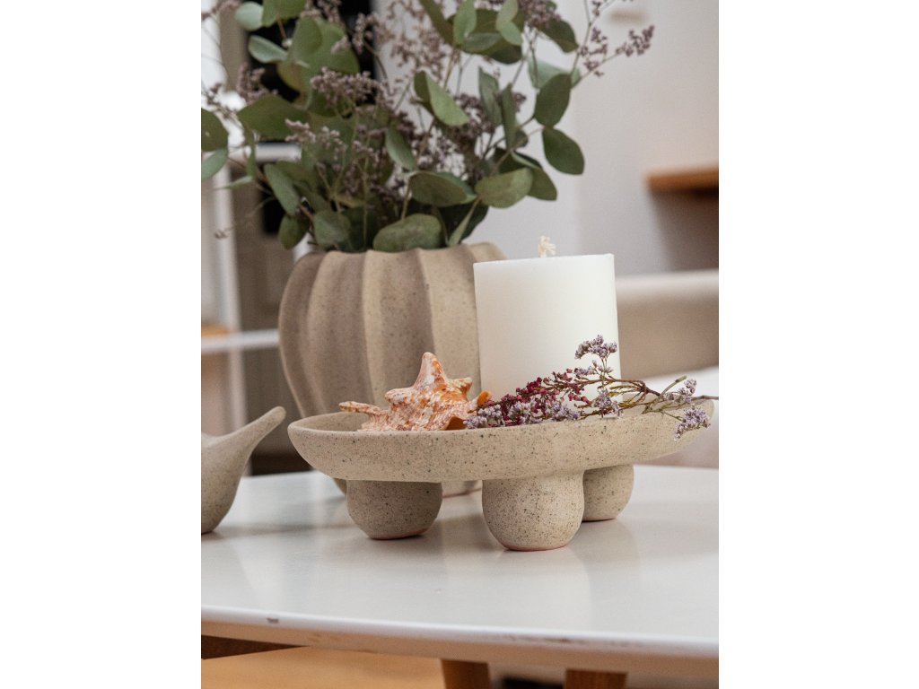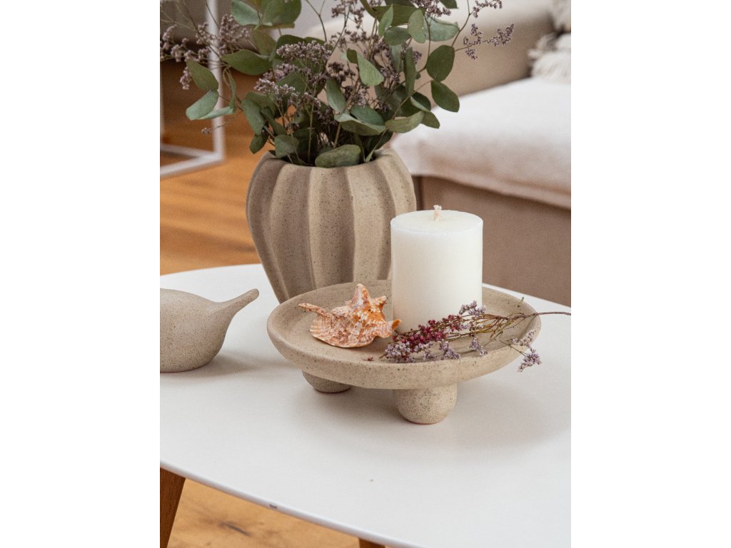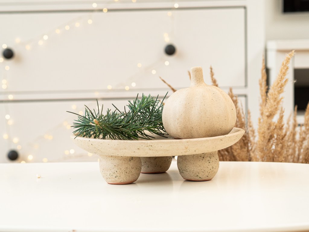 Ručně vyrobený keramický podnos na nožkách v přírodní/bílé barvě