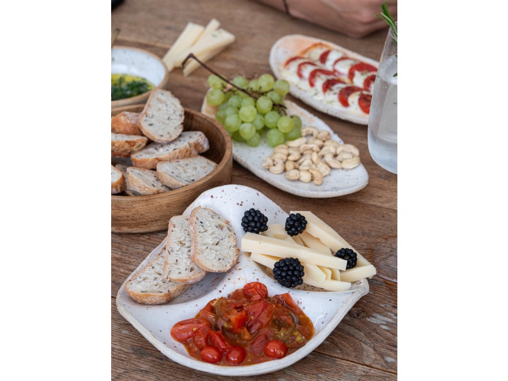 Ručně vyráběný dělený keramický talíř z kameniny. Originál pro servírování sýrů, ovoce i dobrot.
