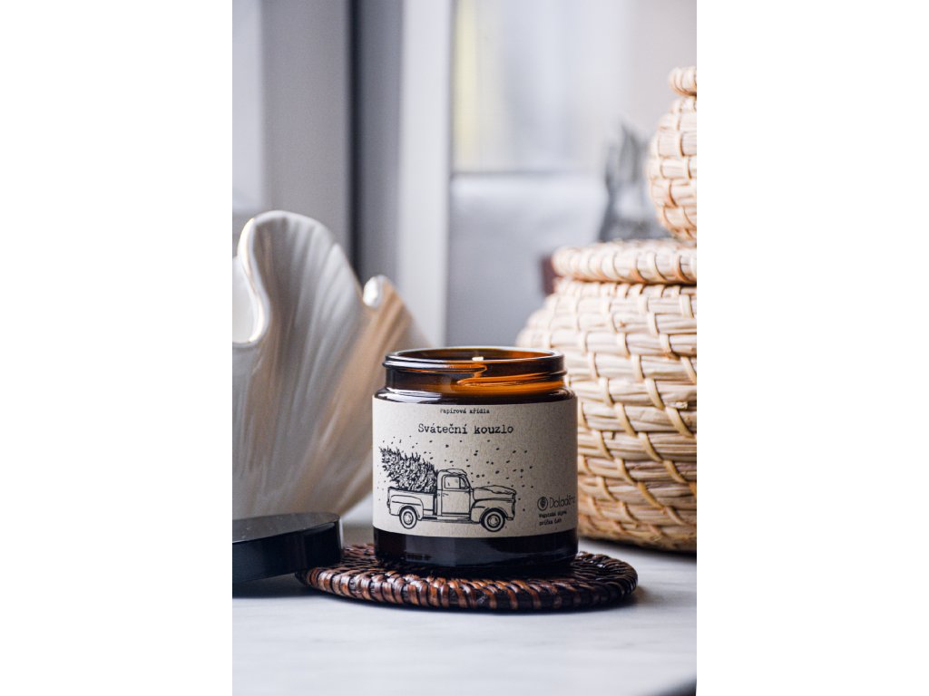 Ručně vyráběná veganská svíčka pro provonění a zútulnění vašeho interiéru s nádhernou autorskou vánoční ilustrací.