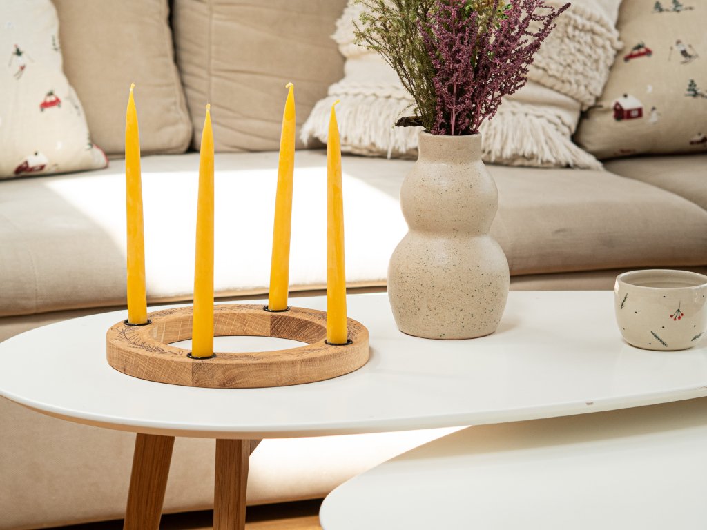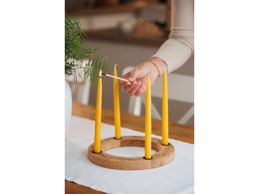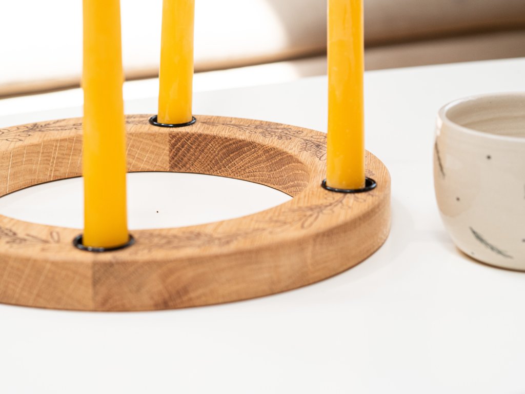 Každý svícen je vyráběn ručně v malých sériích, což z něj dělá jedinečný kousek, který jen tak někdo nemá. Kvalitní dubové dřevo a pečlivé zpracování zaručují dlouhou životnost a krásu na mnoho let.