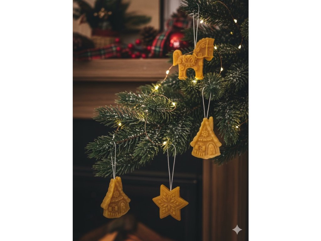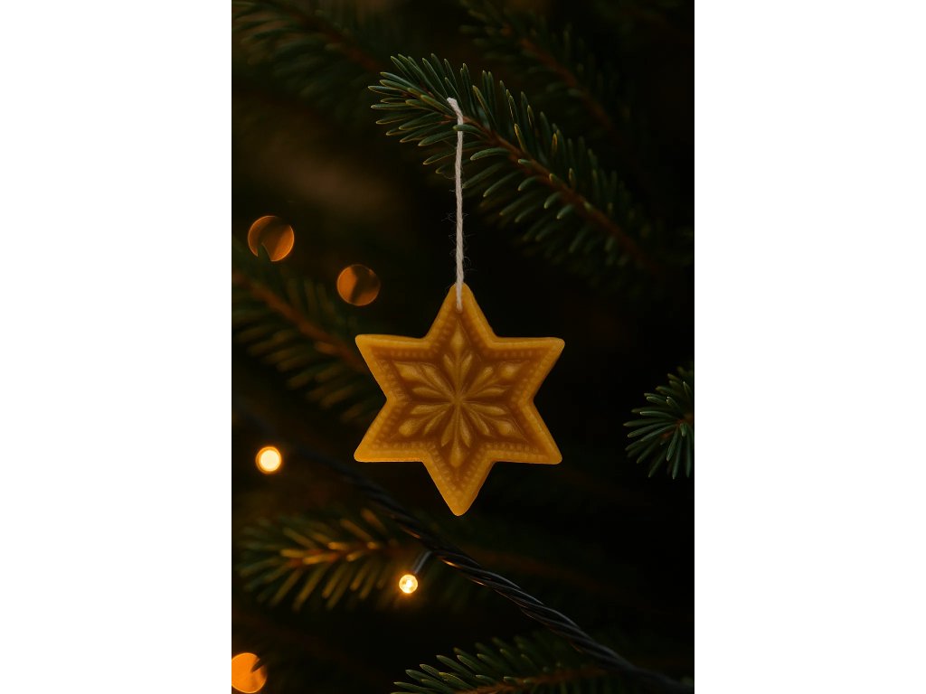 Přírodní vánoční ozdobička z pravého včelího vosku. Krásně voní, vynikne na stromečku i větvičkách a potěší jako drobný dárek.