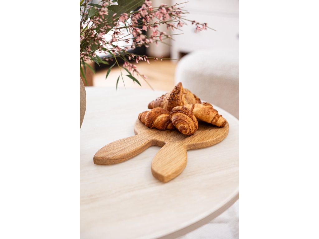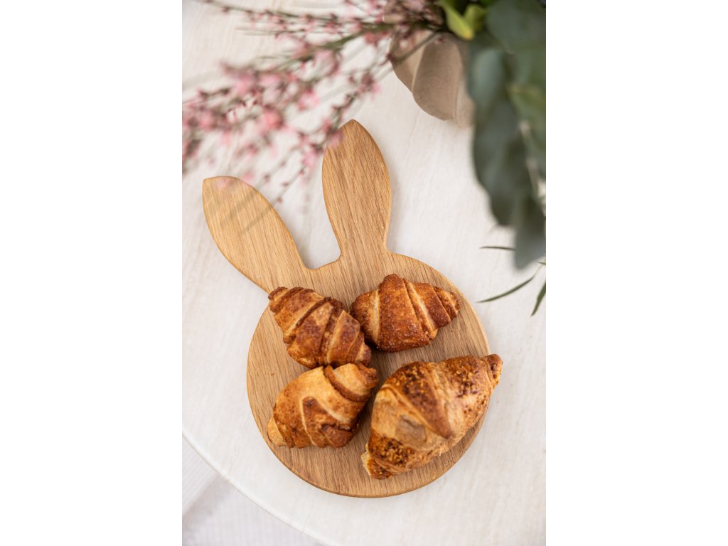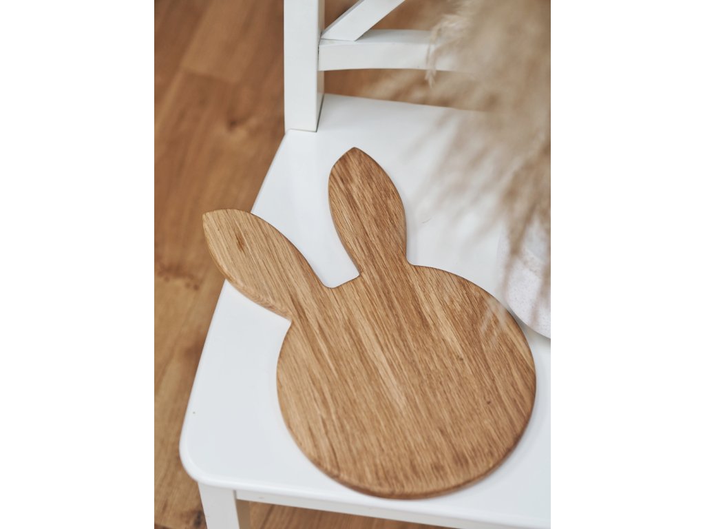 Masivní prkénko z dubového dřeva ve tvaru zajíčka, které potěší nejenom děcké oči. Je stylové a fotogenické. Servírování bude díky němu hravé a originální. Díky kvalitnímu zpracování bude také krásným interiovým doplňkem.